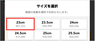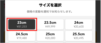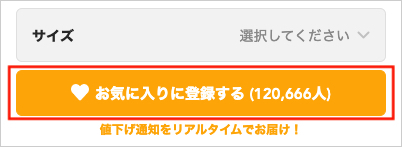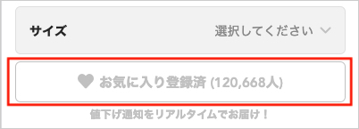 3. 該当サイズが黒く表示された状態で「お気に入り登録」をタップ