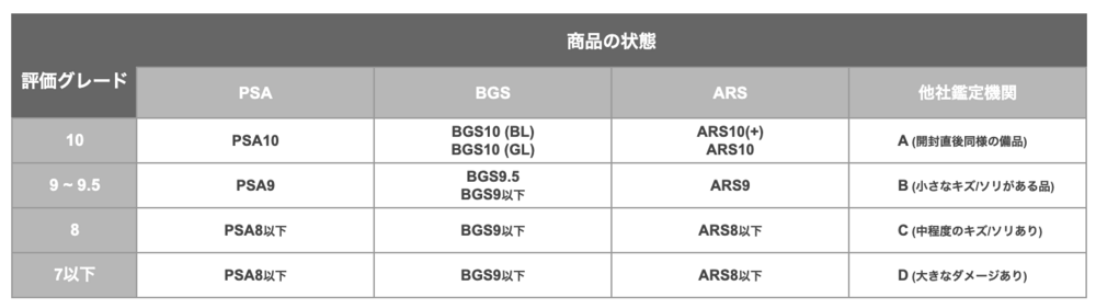 鑑定機関とその評価グレードに応じて、上記の方法で状態レベルを選択してください。