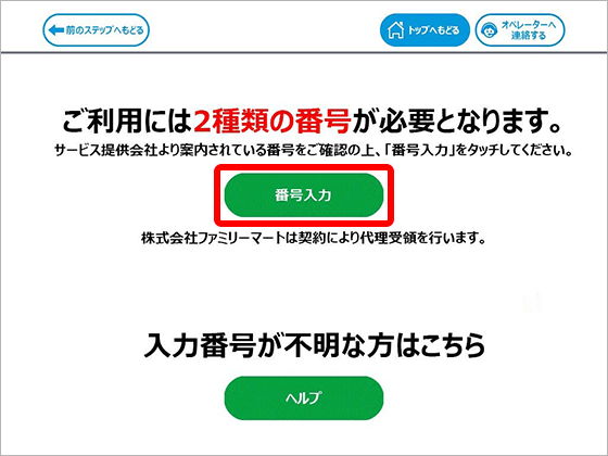 ファミリーマートでのお支払いは、店頭に設置のマルチコピー機の操作が必要です。