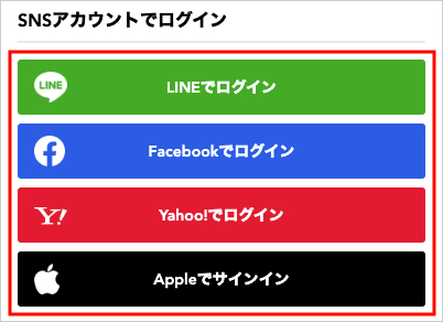 3. 「SNSアカウントでログイン」から各SNS(LINE、Facebook、Yahoo!、AppleID)でログイン・サインイン