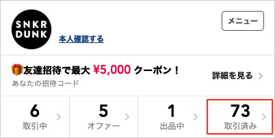 マイページには、取引の成立を待つオファー・出品や、完了済みを含む全ての取引が表示されます。
