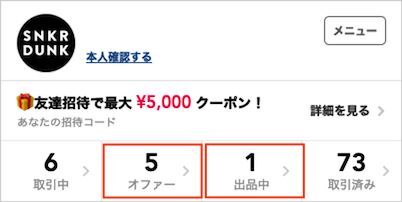 取引成立前の商品は、マイページ画面上部の「オファー」「出品中」にそれぞれ表示されます。