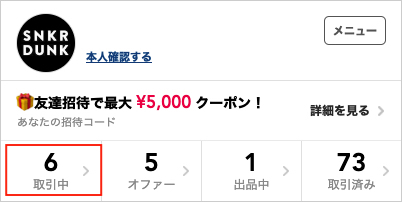 取引が成立し、進行中の商品はマイページ画面左上の「取引中」に表示されます。