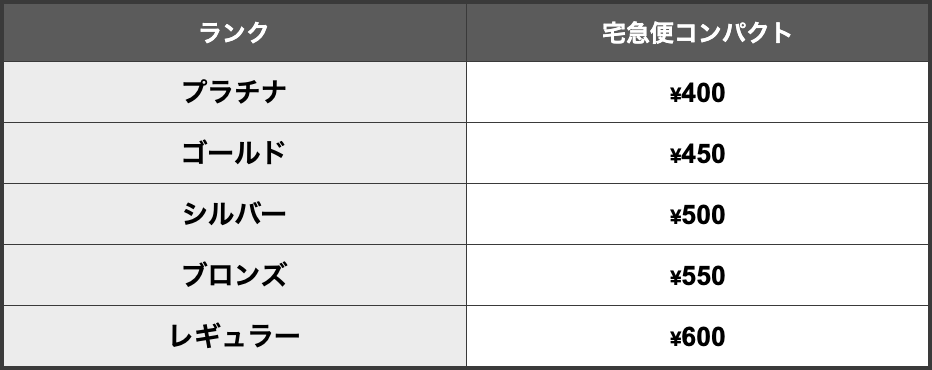 宅急便コンパクトの配送料は、会員ランクにより異なります。