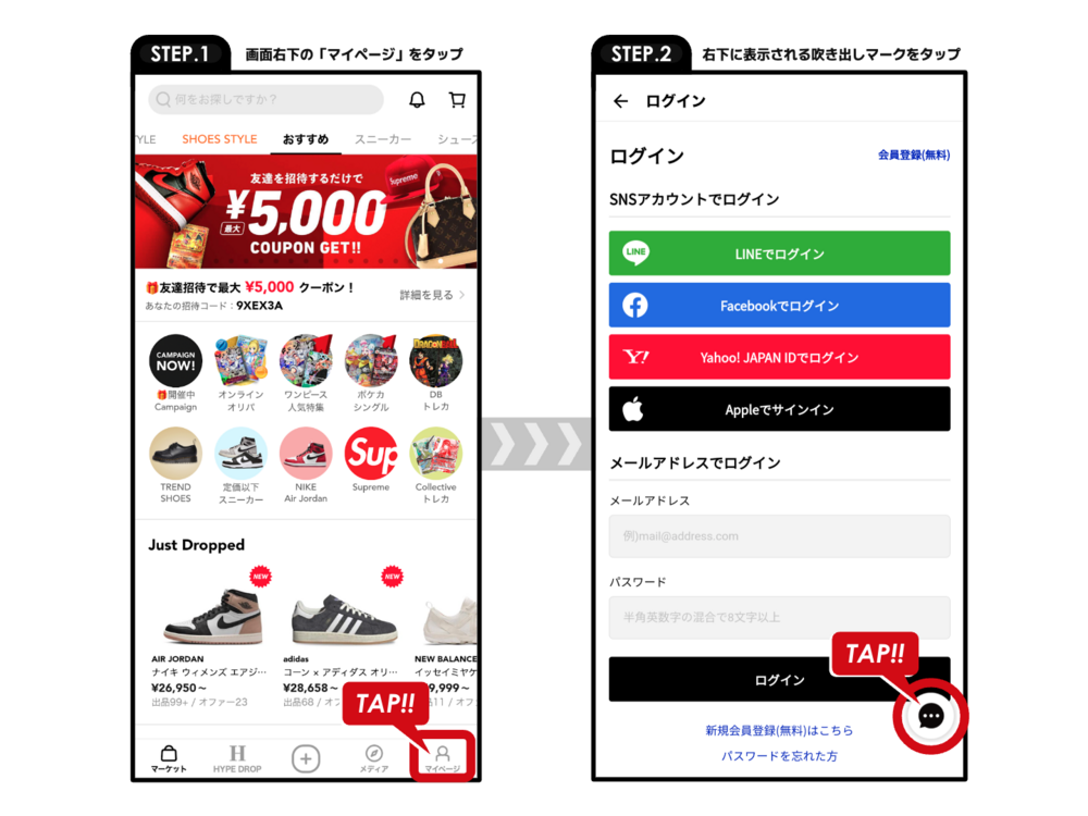 STEP 3. 必要情報を記載して「ログイン」をタップ