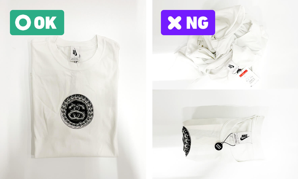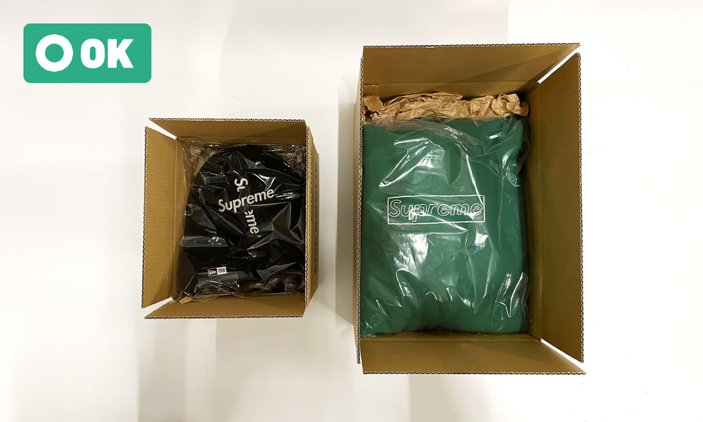When packing sneakers with apparel items (small items, etc.), please do not put apparel items (small items, etc.) inside the sneaker box, but pack them outside the box."
